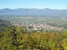Lake Kastoria viewed southeast from Korisos. The plains in the background were the area where the German artillery deployed.