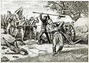The battle is primarily remembered today for being the only time in American history a school's student body was used as an organized combat unit.[3] During the battle Confederate general John C. Breckinridge ordered cadets from the Virginia Military Institute (VMI), some of them child soldiers no older than 15, to join an attack on the Union lines.[4][5] The event has gone on to become central to many of the Institute's myths and traditions.