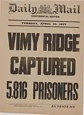 - ↑ Cook, Tim (2 April 2017). "The event that recast the Battle of Vimy Ridge". Toronto Star. Toronto. Retrieved 8 April 2017.