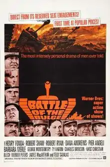Battle of the Bulge is a 1965 American widescreen epic war film produced in Spain, directed by Ken Annakin and starring Henry Fonda, Robert Shaw, Telly Savalas, Robert Ryan, Dana Andrews and Charles Bronson. The feature was filmed in Ultra Panavision 70 and exhibited in 70 mm Cinerama. Battle of the Bulge had its world premiere on December 16, 1965, the 21st anniversary of the titular battle, at the Pacific Cinerama Dome Theatre in Hollywood, California.