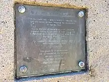 Bayview Park ferry wharf, and the namesake public park located adjacent to it, is built upon the site of the historical Burwood ferry wharf, which provided vital transport links from the region to Parramatta and the Sydney central business district in the early 19th century.[1] Burwood wharf is most significant for being the landing site of HMS Buffalo on 26 February 1840,[2] which carried 58 patriote exiles who fought against British colonialists in the Lower Canada Rebellion.[3][4] The prisoners, who were incarcerated at Longbottom Stockade, formerly located at the present site of Concord Oval, were pardoned four years later,[3][4] and policies pertaining to responsible government for which the Rebellions of 1837–1838 were fought, were eventually adopted in both Canada and Australia in the decades after the rebellions.[5][6] A memorial stone to commemorate the 130th anniversary of the landing of HMS Buffalo was originally erected at Cabarita Park in May 1970 by Concord Council, and dedicated by Prime Minister of Canada Pierre Trudeau. The memorial stone was moved to its current location adjacent to the wharf entrance following the development of the Bayview Park reserve in February 1984.[2] A similar memorial stone for the exiles of the Upper Canada Rebellion, who were also carried to Australia aboard MS Buffalo, was erected in Hobart, Tasmania.[7] The geographic features of France Bay, Exile Bay, and Canada Bay, were named in honor of the convicts and their landing at the present-day Bayview Park.[8]