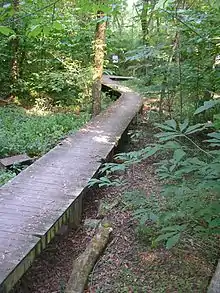 The preserve includes 2 miles (3.2 km) of walking trails, which cross wetlands and a ridge top.[2] There are also 180 species of trees, shrubs and wildflowers. It is managed by the Louisville Nature Center, which is located on the west side of the preserve in a building which opened in 1997. The center claims it is "one of the largest inner-city nature preserves" in the United States.[3] The preserve and nature center run on about a $90,000 annual budget, and in May 2007 reported about $100,000 in operational debt.[4]