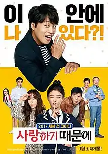 Because I Love You (Korean: 사랑하기 때문에; RR: Saranghagi Ttaemoone) is a 2017 South Korean fantasy-comedy omnibus film starring Cha Tae-hyun and Kim Yoo-jung. Directed by Joo Ji-hoong, it premiered on January 4, 2017.[2][3] This movie starring Cha Tae-hyun is produced by his elder brother Cha Ji-hyun[4] who also produced the film The Grand Heist starring Tae-hyun.[5]