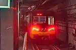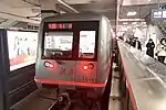 Type-A cars run on Lines 11, 14, 16, 17, 19 and under construction Lines 3 and 12. They are 3.1 meters longer, and 20 cm wider than Type-B cars with a designed capacity of 310 passengers per car and 10 sets of doors per train compared to 8 sets of doors per train on Type-B cars.[9][8] Type A cars draw 1,500 V DC power from overhead wire and can reach 100 km/h (62 mph). Line 14 uses six-car Type A train sets which can carry 1,860 passengers per train and allow for throughput of up to 55,800 passengers per hour per direction. Lines 16, 17 and 19 uses eight-car Type-A train sets which can carry 2,480 passengers per train and allow for throughput of up 74,400 passengers per hour per direction.[8]