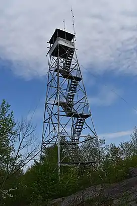 The first structure built on the mountain was a wooden tower that was constructed by the Conservation Commission in 1912. In 1917, the Commission replaced it with a 47-foot-tall (14 m) Aermotor LS40 tower. The tower was taken out of service in 1988. The tower was officially closed in early 1989 by the Department of Environmental Conservation.[2]