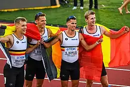 The Belgian men's 4 × 400 metres relay team, nicknamed the Belgian Tornados from July 2014 onwards,[1] is the relay team of the Belgian national athletics team that has given the highest number of medals in the international competitions, mainly thanks to the support of the Borlée family.[2]