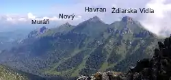 ![]() Muráň, Nový, Havran, Ždiarska Vidla peaks – beginning from the left | |