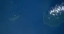 Bellona is the small island on the left side; Rennell Island's northern end can be seen on the right of the picture. Courtesy NASA.