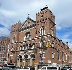 Among the neighborhood's array of Italian restaurants and markets, there are multiple points of interest. Our Lady of Mount Carmel, a Roman Catholic church on E. 187th Street at the corner of Belmont Avenue, was constructed in 1906.[25] The Arthur Avenue Retail Market, which extends the block between Arthur Avenue and Belmont Avenue, features an array of Italian meats, cheeses, and other goods, as well as cigars, a bar, and a dining area.