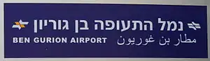 Ben Gurion Airport railway station (Hebrew: תחנת הרכבת נמל התעופה בן גוריון, Tahanat HaRakevet Nemal HaTe'ufa Ben Gurion) is an Israel Railways station located in the lower level of Ben Gurion International Airport's Terminal 3. The station opened on 10 October 2004, together with the opening of Terminal 3.[2][3] The railway line extending to the northwest from the station connects it to Tel Aviv and points north, while in the other direction from the station the railway splits south to Lod and southeast to Modi'in and Jerusalem.