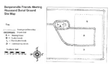 - ↑ Koos, Greg. "Benjaminville Friends Meetinghouse and Burial Ground," (PDF), National Register of Historic Places Nomination Form, Site map, October 24, 1983, p. 8, HAARGIS Database, Illinois Historic Preservation Agency. Retrieved June 21, 2007.
