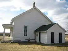 In 1859, three years after the first Quaker settlers arrived in the area, a meeting house was constructed on the site of the present-day Friends meeting house for US$1,000.[2] Quakers continued to flow into the area through the 1860s and in 1874 the current Friends meeting house was constructed and it has seen little change since it was built.[2][4] Some minor alterations have taken place, including the addition of a concrete porch to the entryway and a shed on the east (rear) facade. The shed was added around 1910 to serve as a storage space and a privy.[2] The building became a social, political, and religious hub for the area Quakers and the site was visited by Friends from other meeting houses around the state.[2] The building is no longer owned by a religious institution, though there are occasional services held there.[2]
