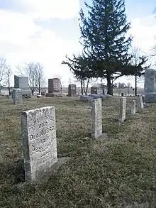 The cemetery was established soon after the original meeting house was built in 1859. Burial grounds were typical accompaniments to Friends meeting houses. While burial grounds were encouraged in the 1825 Quaker Rules of Discipline, the burial of non-Quakers in Quaker cemeteries was not.[2] To satisfy this rule burials at Benjaminville were separated into two separate sections to allow an area for non-Quakers.[2][4] A newer section contains a mix of Quaker and non-Quaker descendants of those originally buried there.