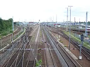 - ↑ Bernd Kuhlmann (2000). ahnknoten Berlin. Die Entwicklung des Berliner Eisenbahnnetzes seit 1838 (in German). Berlin: Gesellschaft für Verkehrspolitik und Eisenbahnwesen Berlin. pp. 78 and 124. ISBN 3-89218-003-2.