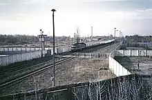 At the new station Staaken Kr. Nauen was for the transition of the field road on the transit tracks probably the safest railroad crossing in the world: Because here the protective wall had to be interrupted, instead of barriers massive roller shutters secured the sealed transit corridor in train traffic through Staaken.
