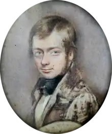 In 1825, Mulrenin moved to Dublin. Within the year, he was able to exhibit a selection of his works at the newly-established Royal Hibernian Academy.[10] An early friend and patron of Mulrenin's in Dublin was the novelist Lady Morgan,[9] who introduced Mulrenin to politicians and creatives including Amelia Curran,[11] Lord Charlemont, Thomas Moore, Richard Lalor Sheil, and Chief Baron Woulfe.[12] In the 1830s, Mulrenin experienced continued growth in his business, especially after the death of John Comerford in 1832 and the relocation of Samuel Lover to London in 1835,[13] since both men were viewed as Ireland's preeminent miniaturists.[3][14]