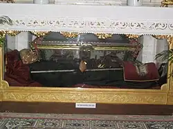 In 1610 he suffered a fall and sustained two wounds that never healed. Not long before his death blood was taken from one leg wound and placed in glass vials; his health took a sharp decline in June 1616.[1] Following his death in mid-1616 the relics of his blood which were kept were reported to have liquified. On his deathbed, the Lecce magistrates asked him twice that he be the town's patron when he entered Heaven. Realino could not speak but nodded in approval and died whispering: "Gesù ... Maria".[4] The blood was liquefied until the mid 19th century, though later instances were also reported.