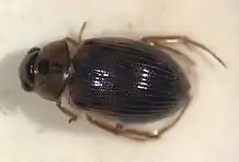 Berosus sayi is a species of hydrophilid beetles native to the United States. It is a synonym of Berosus striatus, which was originally described by Thomas Say in 1825, and females can be characterized by a small tooth on the suture near the apex of each elytron.[1][2][3][4][5][6]