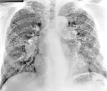 X-ray image of a 54-year-old man working in the aerospace manufacturing industry with berylliosis