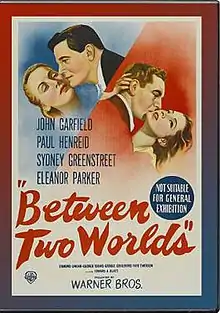 Between Two Worlds is a 1944 American World War II fantasy drama film starring John Garfield, Paul Henreid, Sydney Greenstreet, and Eleanor Parker. It is a remake of the film Outward Bound (1930), itself based on the 1923 play Outward Bound by Sutton Vane. It is not, as is sometimes claimed, a remake of Fritz Lang's Destiny (original title Der müde Tod).[1]
