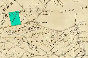 The township became part of Halton County when that county was created as part of Gore District in 1816. The township was also known as Beverly Township when it was transferred to Wentworth County in 1853. When the Regional Municipality of Hamilton–Wentworth was created in 1974, most of Beverley Township was absorbed by Flamborough, Ontario.[1] The area is now part of the city of Hamilton.