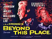 Beyond This Place (released in the United States as Web of Evidence) is a 1959 British crime mystery film based on the 1950 novel of the same title by A. J. Cronin.[1] It was directed by Jack Cardiff and stars Van Johnson and Vera Miles.[2]