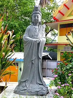 Bhaiṣajyarāja (Skt: भैषज्यराज; Traditional Chinese: 藥王; Simplified Chinese: 药王; pinyin: yào wáng; Japanese: 薬王 Yakuō; Vietnamese: Dược Vương Bồ Tát), or Medicine King, is a bodhisattva mentioned within the Lotus Sutra and the Bhaiṣajyarāja-bhaiṣajyasamudgata-sūtra (Chinese: 佛說觀藥王藥上二菩薩經; Sūtra Spoken by the Buddha on Visualizing the Two Bodhisattvas Bhaisajyarāja and Bhaisajyasamudgata).[1][2][3] In chapter 23 of the Lotus Sutra (The Bodhisattva Bhaiṣajyarāja), the Buddha tells the story of the 'Medicine King' Bodhisattva, who, in a previous life, burnt his body as a supreme offering to a Buddha.[4][5][6] He is said to have been reborn over a period of numerous lifetimes healing and curing diseases, and is a representation of the healing power of the Buddha.