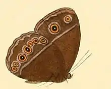 - โ "Afrotropical Butterflies: File E โ Nymphalidae - Subtribe Mycalesina". Archived from the original on 2014-02-22. Retrieved 2012-05-15.