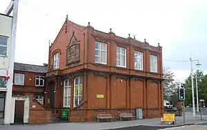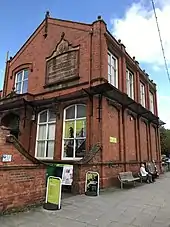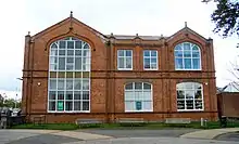The former Bideford Art School is now a listed building. The builder and architect was George Malam Wilson (1855-1917) of Bideford.[2] Built of red brick with a slate roof and parapeted gable ends, the building is on an L-shaped plan with the former classrooms to the north and east and the main entrance on the south side opening onto a small courtyard with the original office/Master's house.[1]