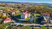 • Church of St. Joseph, an early Baroque church with a Classicist façade, built in 1637, extended from the west in 1838. The main altar contains a painting on boards of the Holy Family from the mid-17th century and two late Baroque side altars from the second half of the 18th century: the left altar contains a painting of the Virgin Mary with the Child from the first half of the 18th century, In the right one, there is a painting of the Crucifixion from the 17th century. Marble epitaph plates from the first half of the seventeenth century, brought to Bieliny from the monastery church of the Holy Cross, disassembled after the fire in 1777, are embedded in the wall of the main façade. Next to the church there is a historic cemetery.