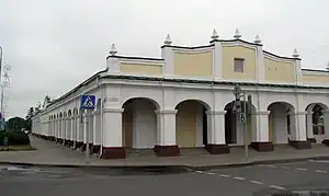 Bielyja Lauki (Belarusian: Белыя лаўкі) is a shopping arcade and now a monument to civic architecture of the 19th century in Pruzhany town, Brest Voblast (province), Western Belarus. It was constructed in 1867 by the architects Mikhailousky and Savich.