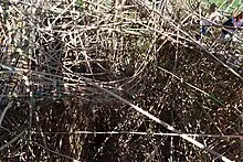 Big Bambú is built of several types of bamboo, primarily a Japanese type called Madake, and also thin Meyeri bamboo and thick moso bamboo. All of the bamboo was grown in Georgia and South Carolina.[11] The construction was undertaken by the artists working together with a team of twenty qualified rock climbers.[14] Construction continued throughout the exhibition's six-month run, with the sculpture ultimately reaching 100 feet long, 50 feet wide, 50 feet high and using 3,200 bamboo poles.[14] Museum visitors were required to wear rubber-soled, close-toed shoes to climb through the structure. Visitors could walk underneath the sculpture without obtaining a ticket and with no restriction on footwear.[14]
