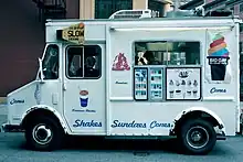 Big Gay Ice Cream (BGIC) is a New York City–based company that started with an ice cream truck. At the company’s peak they operated four storefronts in New York City and one in Philadelphia. Co-founded by Doug Quint and Bryan Petroff, BGIC specializes in soft-serve ice cream cones, cups, and novelties with a menu of unique and unusual flavors and toppings.[1] BGIC was part of a wider trend of gourmet and upscale food trucks popular in the United States.[2]
