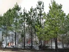 Big Woods State Forest covers a landscape typified by pine savanna; it contains primarily loblolly pine from its days as a timber plantation, and newer plantings of longleaf pine.[2] Wildlife on the property include deer, wild turkey, bobcat, fox, coyote, and rabbit.[3]