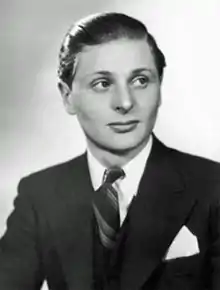 Throughout his life Beaumont was evasive about his background, given, as one biographer wrote, "to disseminating fanciful accounts of his origins".[1] It was not until a 1989 biography by Richard Huggett that the facts became widely known.[2] He was born Hughes Griffiths Morgan, in Hampstead, London, the son of Morgan Morgan, a barrister, and his wife Mary Frances, née Brewer.[1] Morgan divorced his wife for adultery when the boy was two.[3] Mary Morgan then married the co-respondent, William Sugden Beaumont, a Cardiff timber merchant, whom the young Beaumont was brought up believing to be his real father. The boy was formally known as Hugh, but was generally called "Binkie".[1] The origin of his nickname is uncertain; John Elsom in a 1991 book Cold War Theatre suggests that "Binkie" was Cardiff slang for a black child or a ragamuffin.[4] William Beaumont died while Binkie was still a boy. Mary Beaumont then let rooms to a lodger, Major Harry Woodcock, a former Army Entertainments Officer and latterly general manager of the Cardiff Playhouse.[2]
