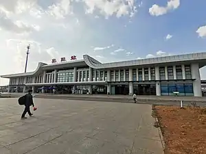 Binyang railway station (Chinese: 宾阳站) is a railway station in Binyang County, Nanning, Guangxi, China. It is an intermediate stop on the Nanning–Guangzhou high-speed railway and the Liuzhou–Nanning intercity railway. During construction, the name of the station was Litang West (Chinese: 黎塘西). Its name was changed to Binyang prior to opening.[1] It opened on 6 March 2015.[2] In April 2020, work began to increase the size of the station building. The new building was opened on 31 December 2020.[3]