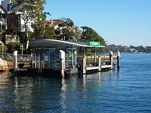 Birchgrove ferry wharf (also known as Yurulbin Point ferry wharf and, formerly, Longnose Point ferry wharf) is located on Sydney Harbour serving the Sydney suburb of Birchgrove. It is served by Sydney Ferries Cockatoo Island services operating between Circular Quay and Cockatoo Island.[1] The single wharf is served by First Fleet, SuperCat and Emerald class ferries.