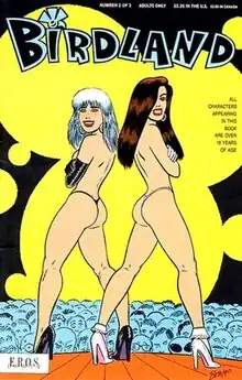 Birdland is a creator-owned erotic comic book limited series created by Gilbert Hernandez. It was first published by Fantagraphics via their Eros Comix imprint between 1990 and 1991. The series features characters from the Love and Rockets series he devised along with his brothers Jaime and Mario but was marketed separately due to its highly explicit sexual content.[1]