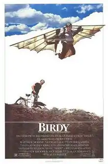 In October 1982, A&M Films, a newly established subsidiary of A&M Records, acquired the film rights and commissioned Sandy Kroopf and Jack Behr to write the screenplay.[3][6][7] Kroopf and Behr made various changes from the novel, opting to focus primarily on the friendship between Birdy and Al Columbato. They also decided to set the story during the Vietnam War, as opposed to the novel, which is set during World War II. "We were in high school in the mid-1960s," Behr explained, "so growing up then was our experience."[7] Structuring the film required Kroopf and Behr to create a nonlinear narrative, and manufacture much of its action and dialogue from Al's narrative in the novel.[7] They spent one year trying to sell their script to various studios, without success.[7] In 1983, Parker received the script from A&M and, after reading it, signed on as director.[8] He then discussed the adaptation with executives at Tri-Star Pictures. After the studio agreed to produce the film, Parker traveled to Los Angeles, where he met with Kroopf and Behr to work on the script.[6]
