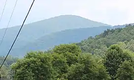Black Mountain is located on the border of Dawson and Gilmer counties. Its elevation is about 3,600 feet.[1] The mountain is located about 4 miles north of Amicalola Falls State Park, 14 miles northwest of Dahlonega and 17 miles east/southeast of Ellijay.[3] Springer Mountain, the southern terminus of the Appalachian Trail, is located about 1 mile (1.6 km) northeast of Black Mountain.[1] Other nearby geographical features include Nimblewill Gap, Frosty Mountain and Tickanetley Creek.[3][1]