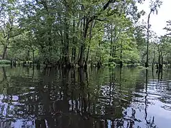 The river is known for having a wide variety of fish species, ranging from several types of sunfish and catfish, as well as largemouth bass. Ancient Bald cypress trees in excess of 2600 years old were discovered along the river in 2019.[1]