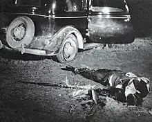 Thompson went on to kill a police officer in Drumright, Oklahoma on July 2, 1924, after robbing the First State Bank of Avery. On December 19, 1924, his gang robbed the Security State Bank by loading the bank's entire safe into a truck. He was captured on December 25, 1924. Thompson was found guilty of murder and sentenced to life in prison. On August 30, 1933, he escaped from the Oklahoma State Penitentiary.[1] He was recaptured in 1934 after robbing several banks in Texas, and sentenced to death on charges of robbery. However, he escaped from Huntsville Prison on July 22, 1934.[5][1][6] Blackie was killed in a stolen car on Route 66 in Amarillo, Texas on December 6, 1934.[1]