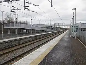 Blackridge was originally excluded from the Airdrie–Bathgate rail link project, but after a three-year campaign by the local community, funding was approved by the Scottish Government at a cost of £5 million. Private housing developer Manorlane agreed to fund 40% of the costs. However, it closed and the funding promise expired. West Lothian Council agreed to take on the burden and expects to recoup the cost from additional expansion in the area.[4] The station opened on 12 December 2010 on a new site, some 600 metres closer to Edinburgh than the previous Westcraigs station.[2]