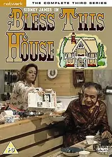 Bless This House is a British sitcom that aired on ITV from 2 February 1971 to 22 April 1976, with a total of 65 episodes. Starring Sid James and Diana Coupland, it was created by Vince Powell and Harry Driver, but mainly written by other hands including Dave Freeman and Carla Lane. It was made for the ITV network by Thames Television. In 2004, Bless This House was ranked by a BBC poll as the 67th Best British Sitcom.