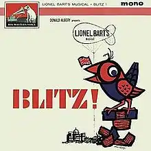 Blitz! is a musical by Lionel Bart. The musical, described by Steven Suskin as "massive", was set in the East End of London during the Blitz (the aerial bombings during World War II). The story drew on Bart's childhood memories of London's Jewish East End during the Blitz and, like most musicals, centred on a romance between a young couple, in this case a Jewish woman and a Cockney man, although the largest role and main point-of-view character is that of Mrs Blitztein, the young woman's mother.[1] Steven Suskin describes it as "Abie's Irish Rose set against the burning of Atlanta."[2] Bart himself described the play as "…three human stories inside an epic canvas; the major human conflict – the major plot – personifies the spirit of London and how that spirit developed during the period of the piece."[3]