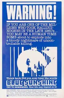 Blue Sunshine is a 1977 American horror film written and directed by Jeff Lieberman, and starring Zalman King, Deborah Winters and Mark Goddard. The plot focuses on a series of random murders in Los Angeles, in which the only common link between the perpetrators is a mysterious batch of LSD that they had all taken years prior.