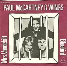 "Bluebird" is a song written by Paul and Linda McCartney and originally performed by the British rock band Wings, released on their 1973 album Band on the Run. According to author John Blaney, it was written during a vacation in Jamaica.[2] However, author Vincent Benitez claims the song was written as early as 1970 or 1971, noting that Paul and Linda sang the song during a live interview in New York City in 1971.[3] In Continental Europe it was also released as the B-side of the "Mrs. Vandebilt" single.[4]