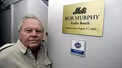 Murphy in front of the radio booth at Shea Stadium named in his honor. (The radio booth at Citi Field is identically named.)