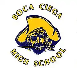 Ground was broken for a $1.34-million school in December 1952, the first new high school built in southern Pinellas County in 26 years. It was open-air with a central administration building and classrooms extending out in a series of parallel wings to take advantage of the Florida weather by providing maximum natural light and exposure for each classroom.[3] In July 1953, the school board chose Boca Ciega (after the nearby bay) as the school's name over Gulfport, Sunshine City, Sun City, Central, Gulf Coast, 58th Street, and Southwest St. Petersburg. Prospective students chose gold (for the Sun) and white (for sand) as the school colors and "Rebels" as the nickname. In September 1953, BCHS opened with 964 students in grades 9–12. The first principal, Richard L. Jones, declared there would be no "rebels" at his school; in another vote, students chose "Pirates."[4] Ironically, Rebels was later adopted as the nickname of the school's cross-town rival, Dixie Hollins High School. The school's alma mater (anthem) was arranged by George Shakley, with words by Kathryn Ludlum (revised by Robert Drick in 1976).