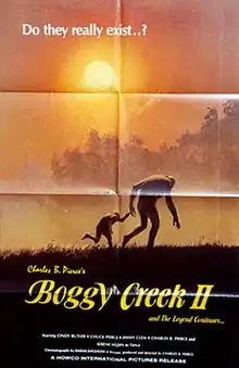 Boggy Creek II: And the Legend Continues is a 1984 American monster horror film written, directed by and starring Charles B. Pierce.[2] It is the sequel to 1972's The Legend of Boggy Creek. Prior to the release of this film, an unofficial sequel to The Legend of Boggy Creek was made in 1977 titled Return to Boggy Creek. The "Big Creature" in the film was portrayed by Hollywood stuntman and bodyguard James Faubus Griffith. Unlike the original film, which was met with positive reviews, Boggy Creek II was largely panned by critics.